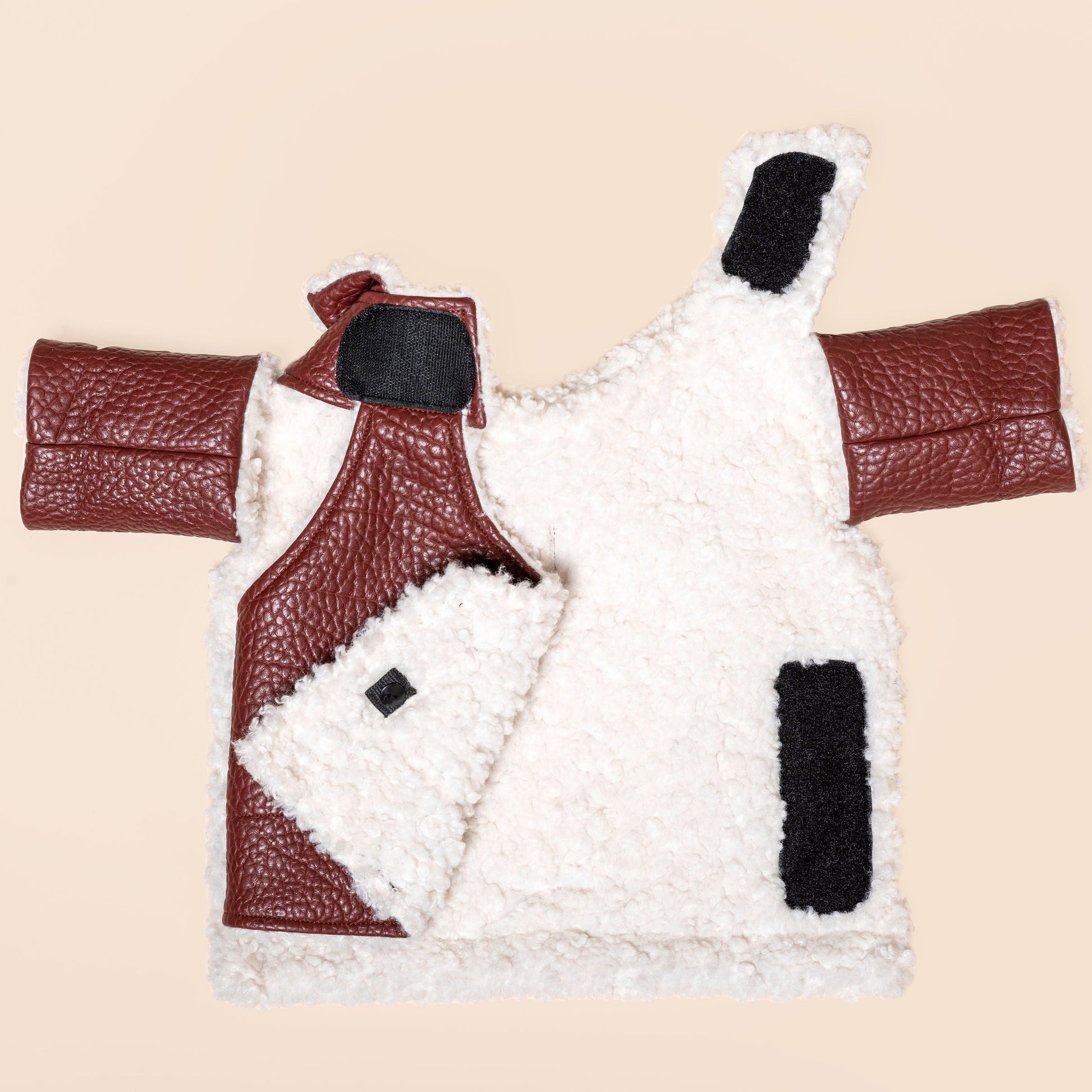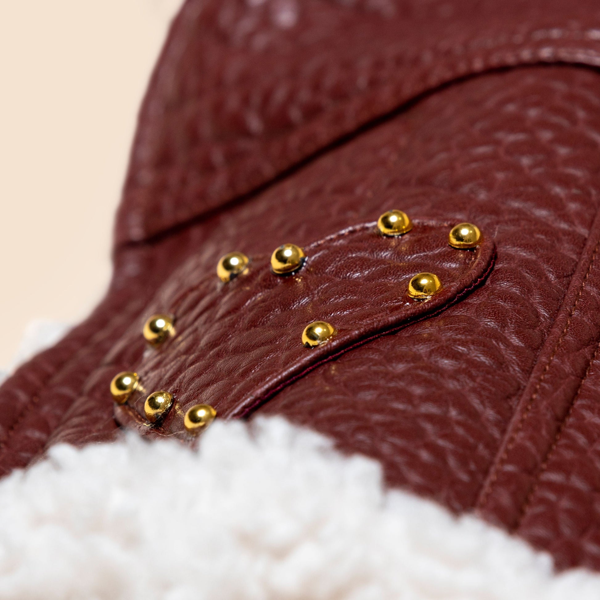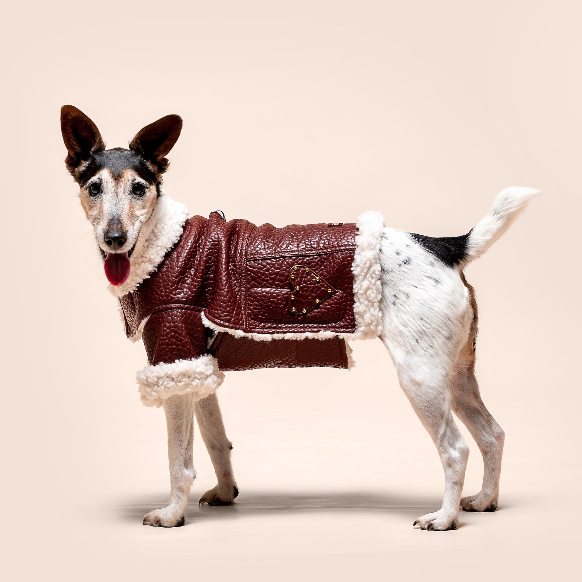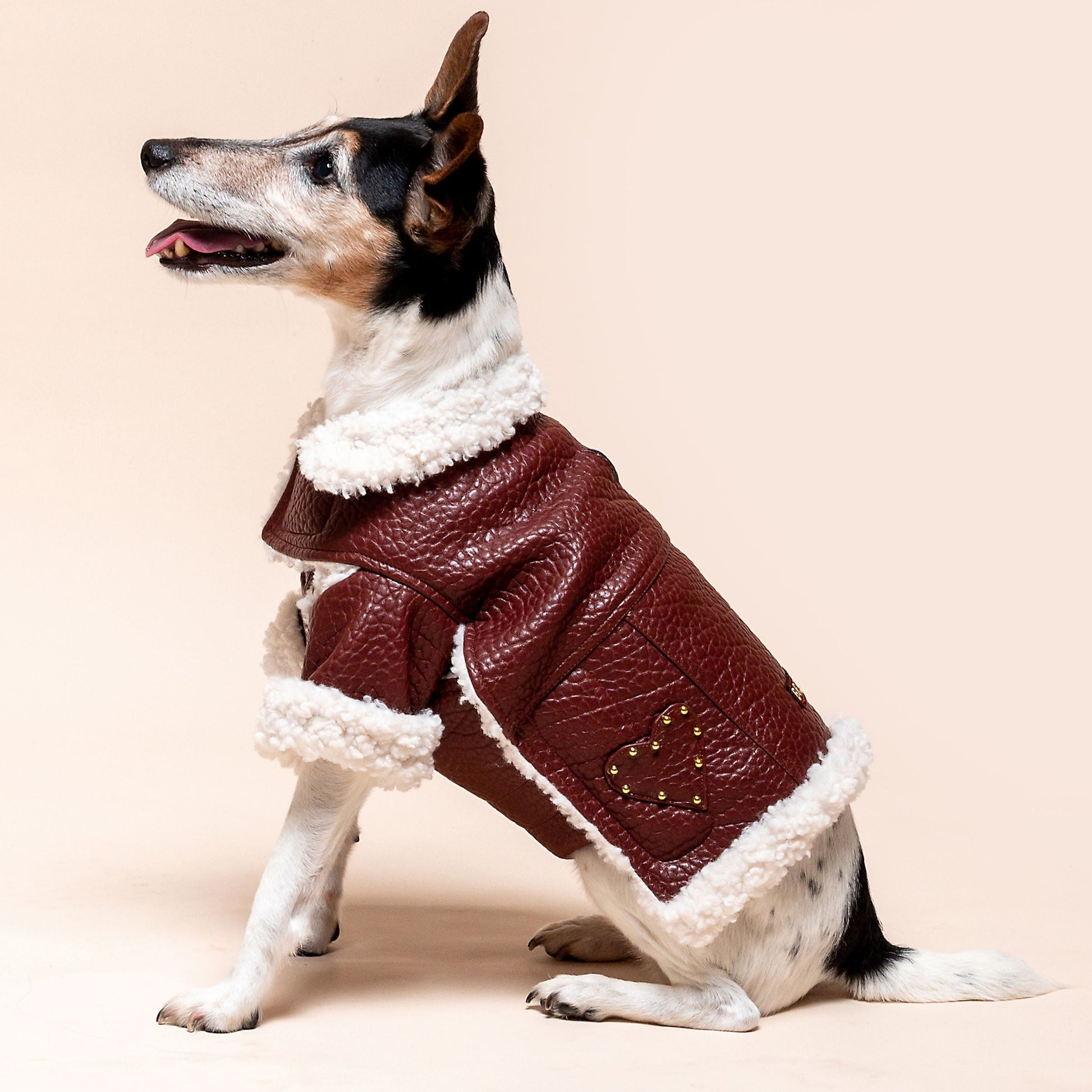 The WILD CHERRY collection’s bold new arrival — the Chearry Cherry Jacket — brings the spirit of classic biker fashion into the world of dog couture. The deep burgundy, subtly textured fabric paired with a contrasting soft faux-fur lining radiates both strength and elegance, while keeping your pup warm and cozy on chilly days.