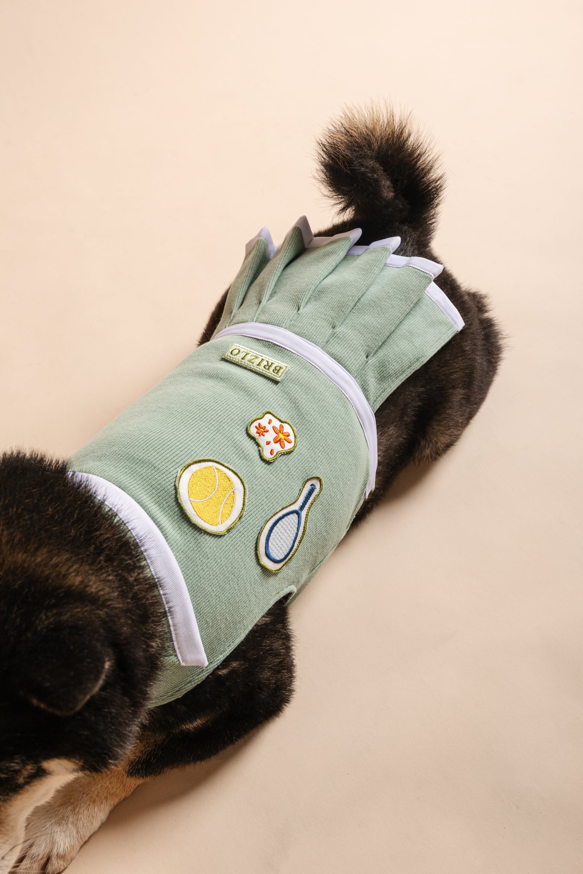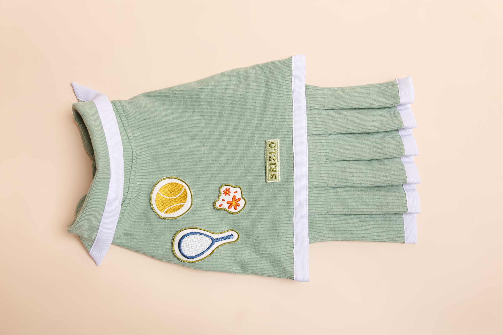 A JUNE BUGZZ kollekció legújabb kedvence, az Ace teniszruha a nyári szabadtéri játékok és a gondtalan tóparti napok hangulatát idézi meg. Ez a különleges darab a tenniscore stílus játékos és sportos eleganciáját ötvözi a ’70-es évek divatklasszikusaival – gondosan megrajzolt MILLAAS x BRIZLO mintákkal, amelyek a tenisz ikonikus motívumait hozzák el a kutyadivat világába.A pasztellzöld anyag könnyed és légies, mégis strapabíró, így tökéletes választás tavaszi és nyári sétákhoz, parkbéli kalandokhoz vagy akár egy kis közös “edzéshez” gazdival. A háton elhelyezett hímzett teniszlabda, ütő és szeletelt narancs motívumok vidám, nyári hangulatot sugároznak. A szoknyarész különösen bájossá teszi, miközben kényelmes mozgást biztosít.Az Ace teniszruha szabása kiemeli a kutyus alakját, a tépőzáras kialakítás pedig gyors és egyszerű fel- és levételt tesz lehetővé. A has részen állítható szorosság biztosítja, hogy a ruha tökéletesen illeszkedjen, így maximális kényelmet és mozgásszabadságot nyújt. Ez a darab nemcsak stílusos, hanem praktikus is – tökéletes választás minden kis négylábú számára, aki szeretne kitűnni a játszótéren vagy a sétányon.