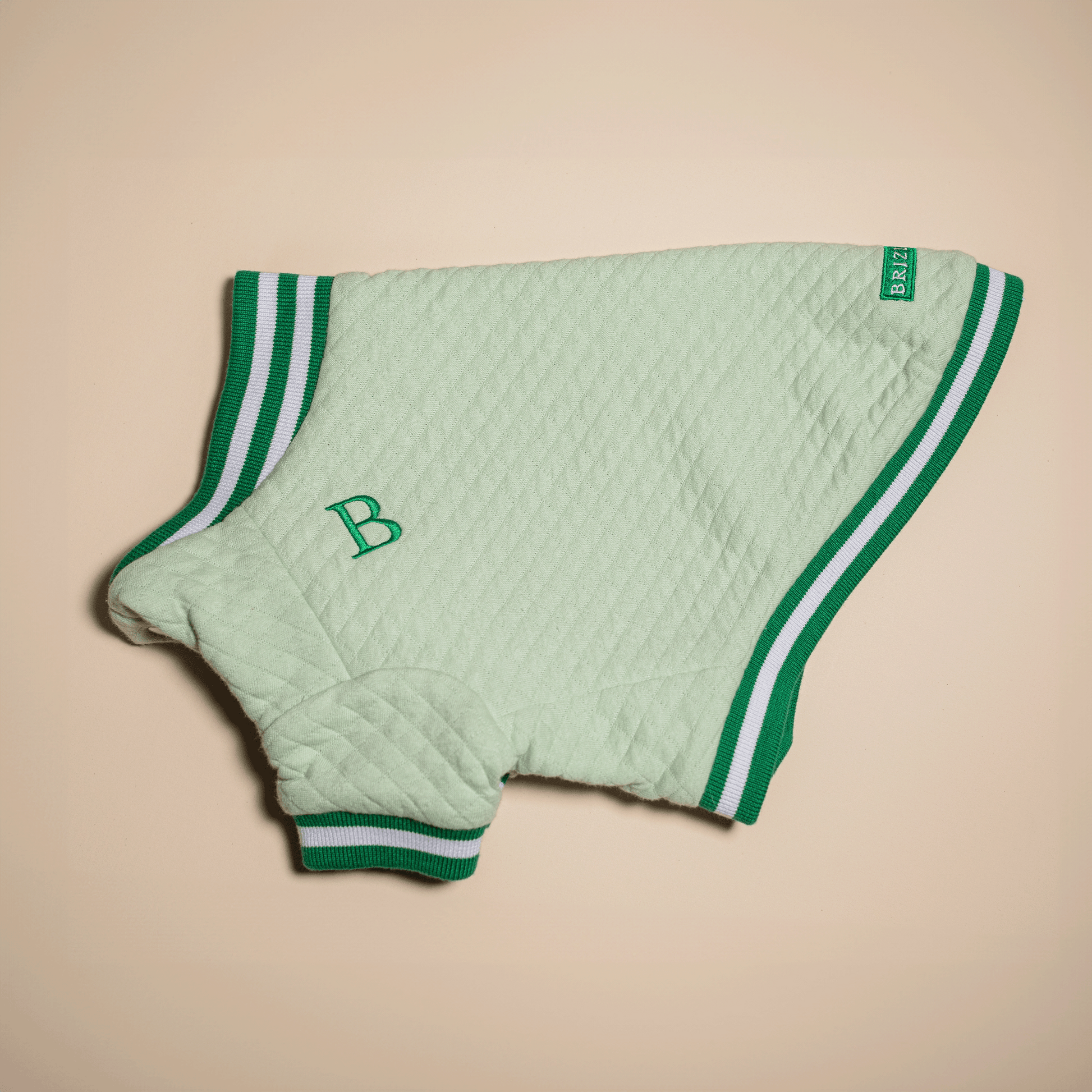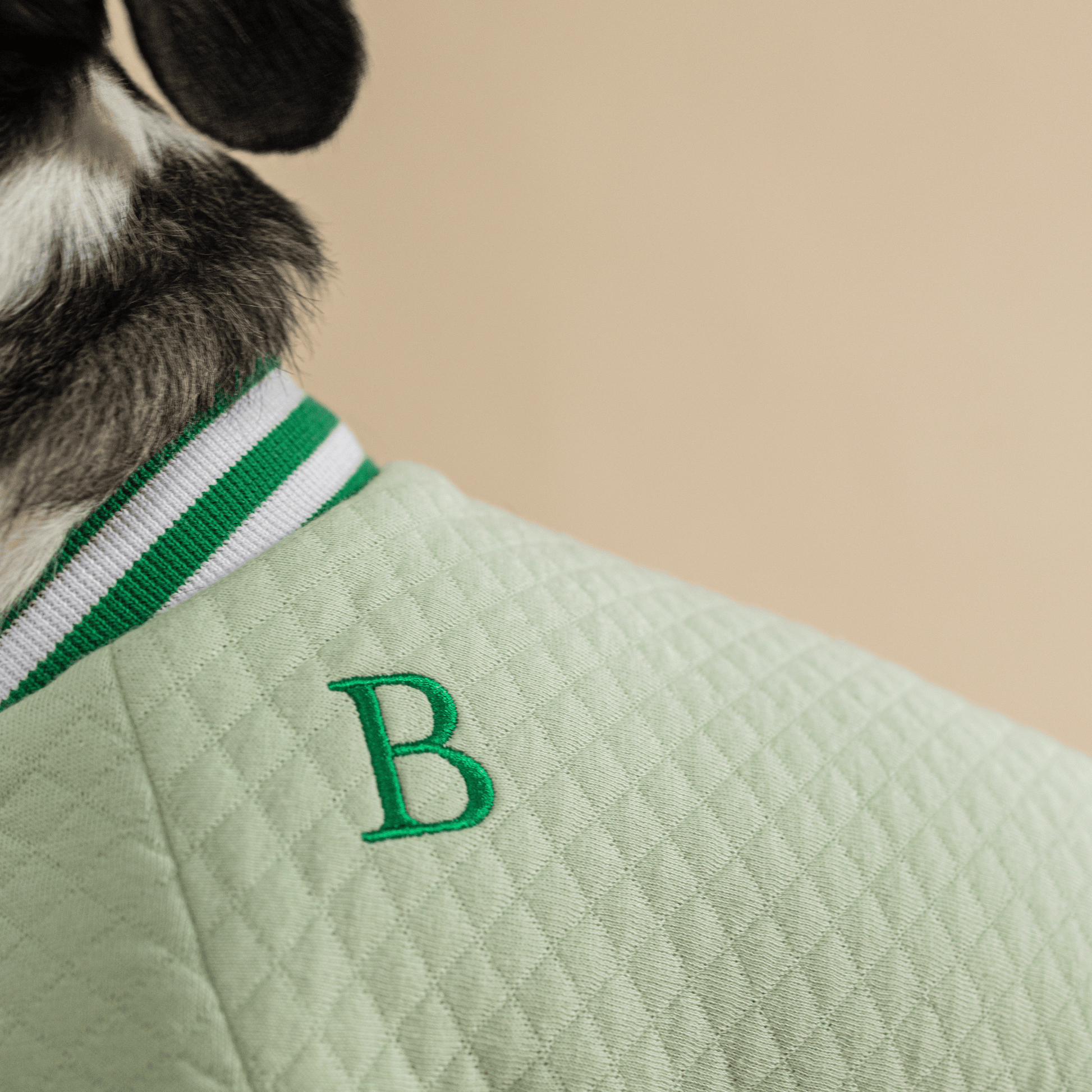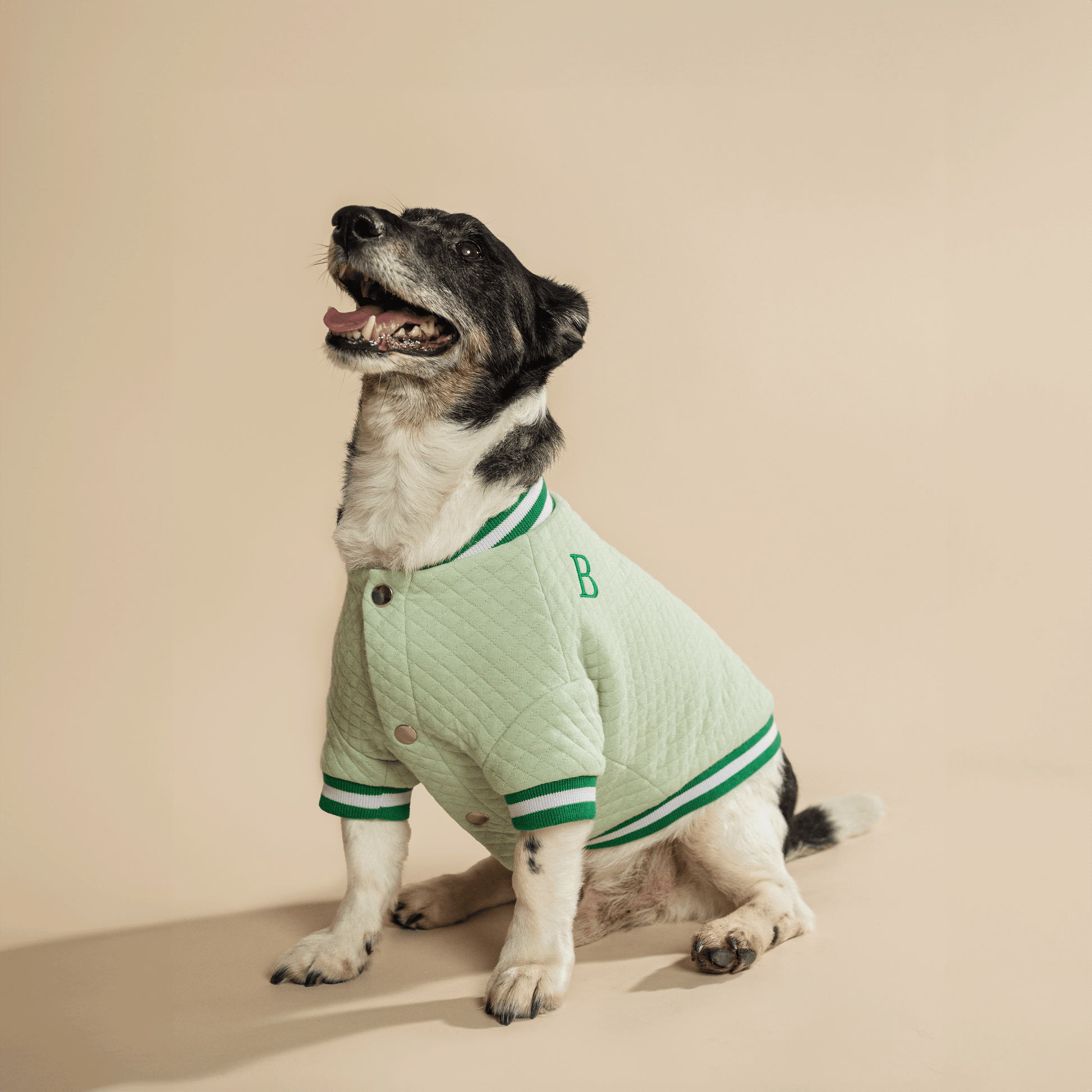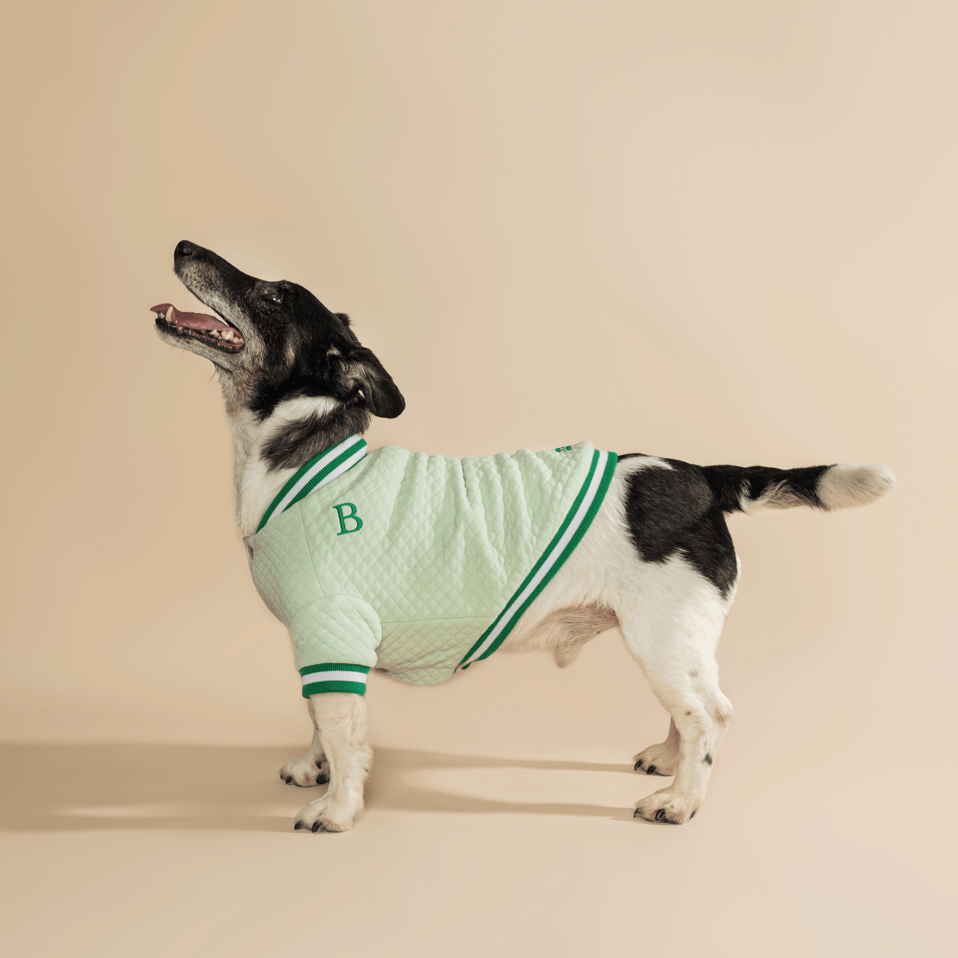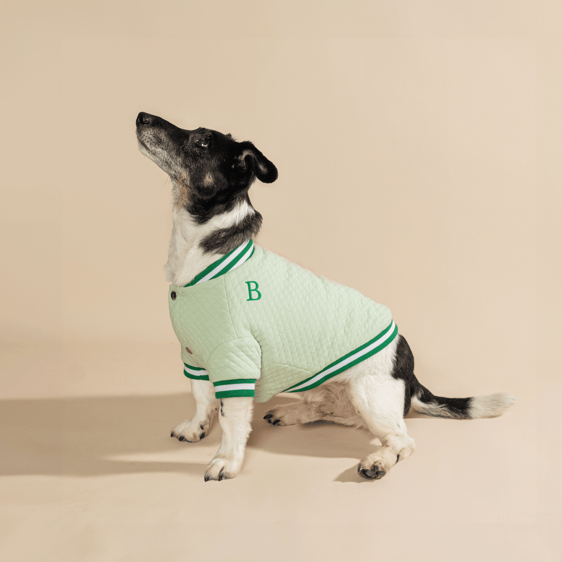 Our sporty-looking cotton bomber jacket in green is an ideal choice for your dogs. It's almost as if they are running on a fresh green meadow, while the jacket's light yet durable material ensures their comfort. Whether it's a short walk or an active game in the park, this jacket will always be a stylish and practical choice.