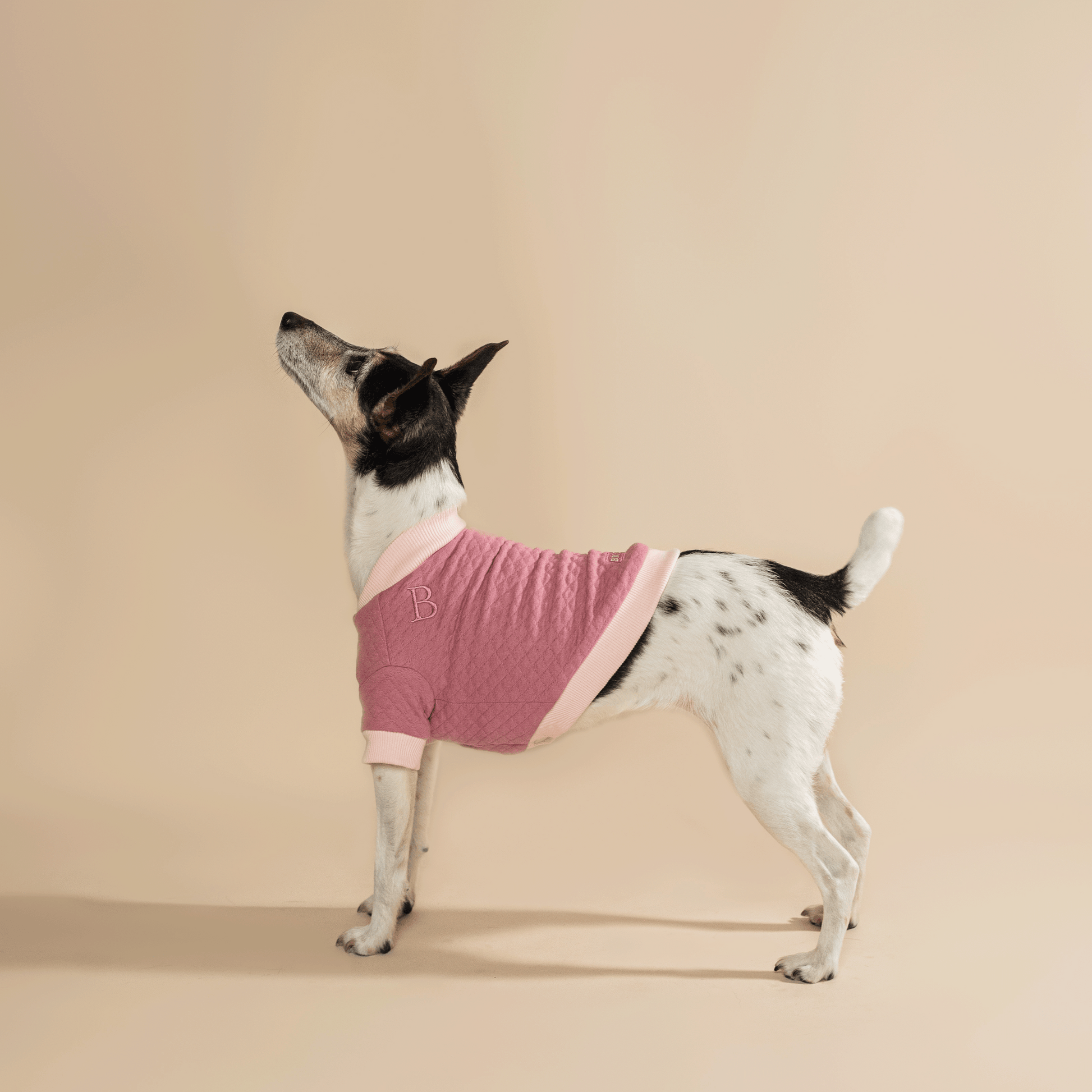 Our sporty mauve cotton bomber jacket is the perfect choice for your dog. It's almost like walking on a flowery path, while the lightweight yet durable material keeps them comfortable. Whether it's a short walk or an active game in the park, this jacket is always a stylish and practical choice.